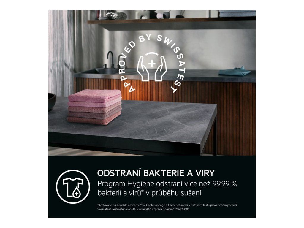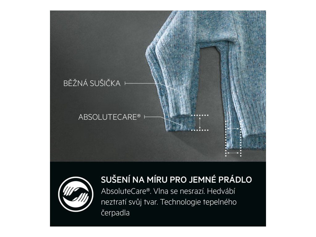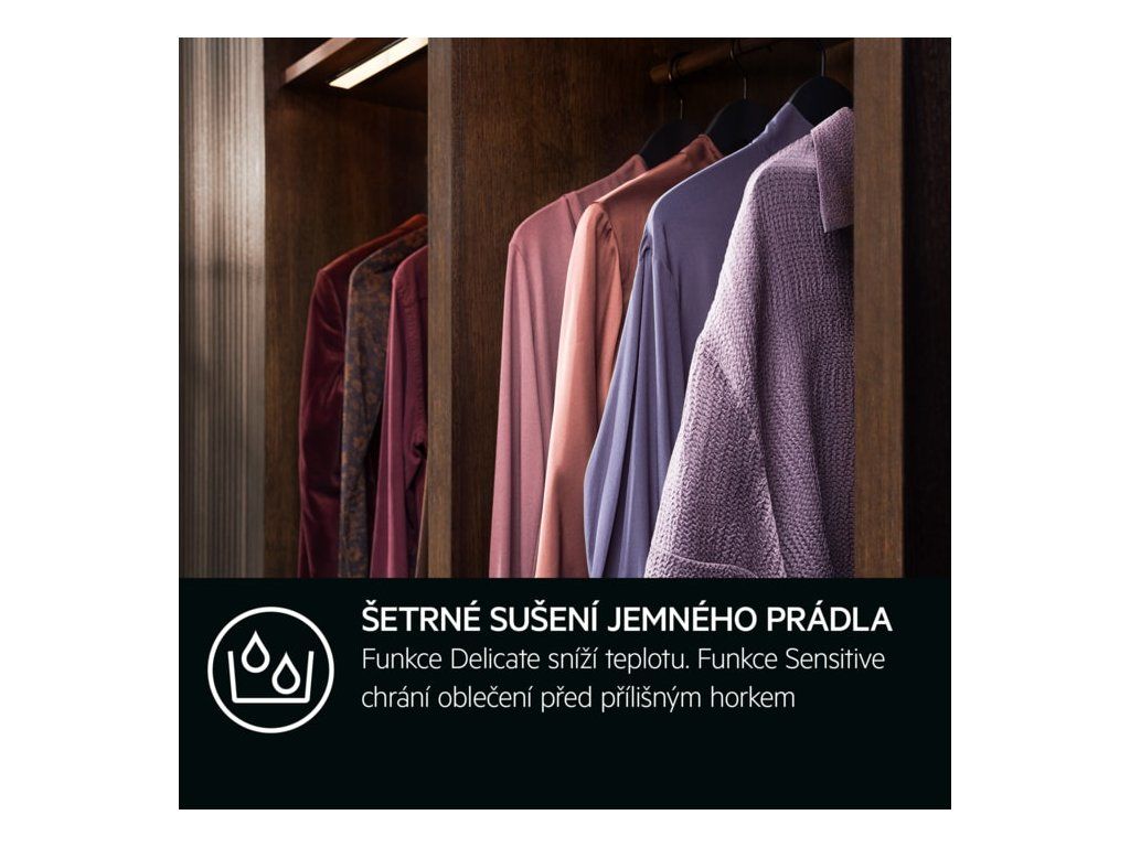 | Uživatelské výhody: | ABSOLUTECARE®. ZARUČENĚ SE NESRAZÍ*, BEZ TŘÍDĚNÍ. SUŠTE BAVLNU A SYNTETIKU SPOLEČNĚ, PRECISEDRY. ŠETŘÍ ČAS A ENERGII. CHRÁNÍ VAŠE OBLEČENÍ, PROGRAM HYGIENA ODSTRAŇUJE VÍCE NEŽ 99,9 % BAKTERIÍ A VIRŮ* BĚHEM SUŠENÍ, SUŠIČKA SENSIDRY® USUŠÍ OBLEČENÍ ROVNOMĚRNĚ, A TO I PŘI NÍZKÝCH TEPLOTÁCH |